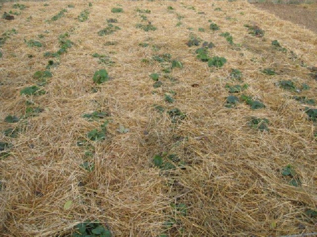Мульчируют культуру весной, тогда цветоносы не будут соприкасаться с грунтом, а еще мульчируют осенью, чтобы клубника не замерзла зимой.