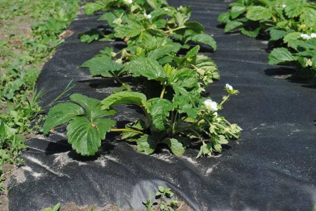 Выращивание клубники в открытом грунте на пленке – в продаже имеется белая, черная, двухцветная пленка. Требуется приобретать мульчирующую пленку толщиной 40–50 мк. Здесь важно рассчитать ширину грядки и число рядов.